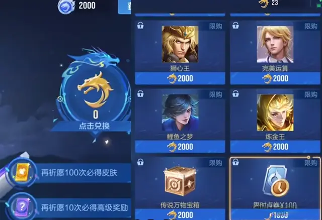 王者荣耀的龙焰晶石获得之后,1000次能够祈愿10次,然后获得龙焰徽章。而在龙吟宝阁当中,里面的奖励也是有各种各样。不仅有限时点券,还有各种永久皮肤。其中,亚瑟狮心王限购返场,是需要2000个龙焰徽章才可以兑换的哈。另外,还有扁鹊的炼金王,甚至是露娜李白等传说皮肤都是可以获得的哦。在我看来,王者荣耀这个龙吟商店,主要是想提升玩家的自身段位,还有提高玩家日活而设计的。毕竟,以前的王者荣耀日活高达1亿啊,你们还记得吗?